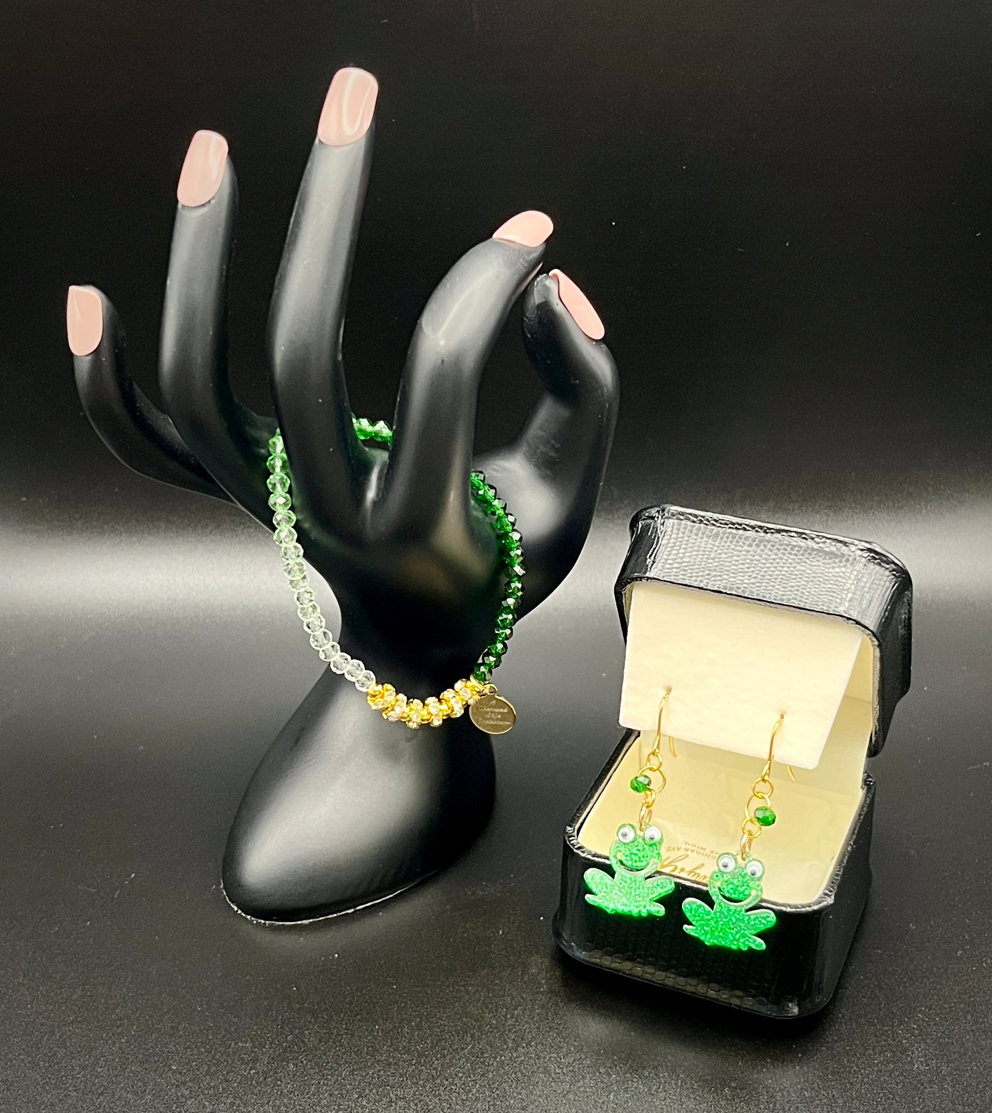 Go for a hoppy new look with Leap into Fun! These googly eyed frog earrings paired with a coordinating green bead bracelet are sure to bring out your playful side. Ribbit into style with this quirky and fun set.
